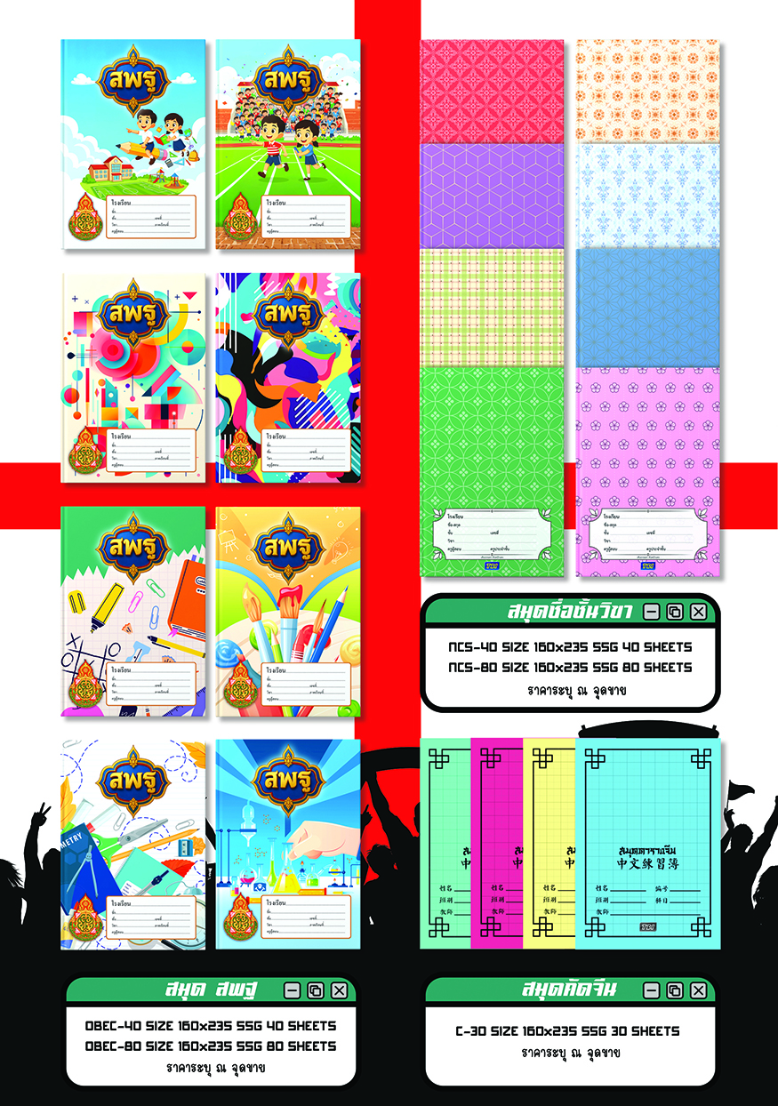 | No. TBI/OBEC-40 | สมุด สพฐ 40 แผ่น | ระบุราคา ณ จุดขาย | 30 Doz. | 160 x 235 mm. 55 grams 40 sheets |